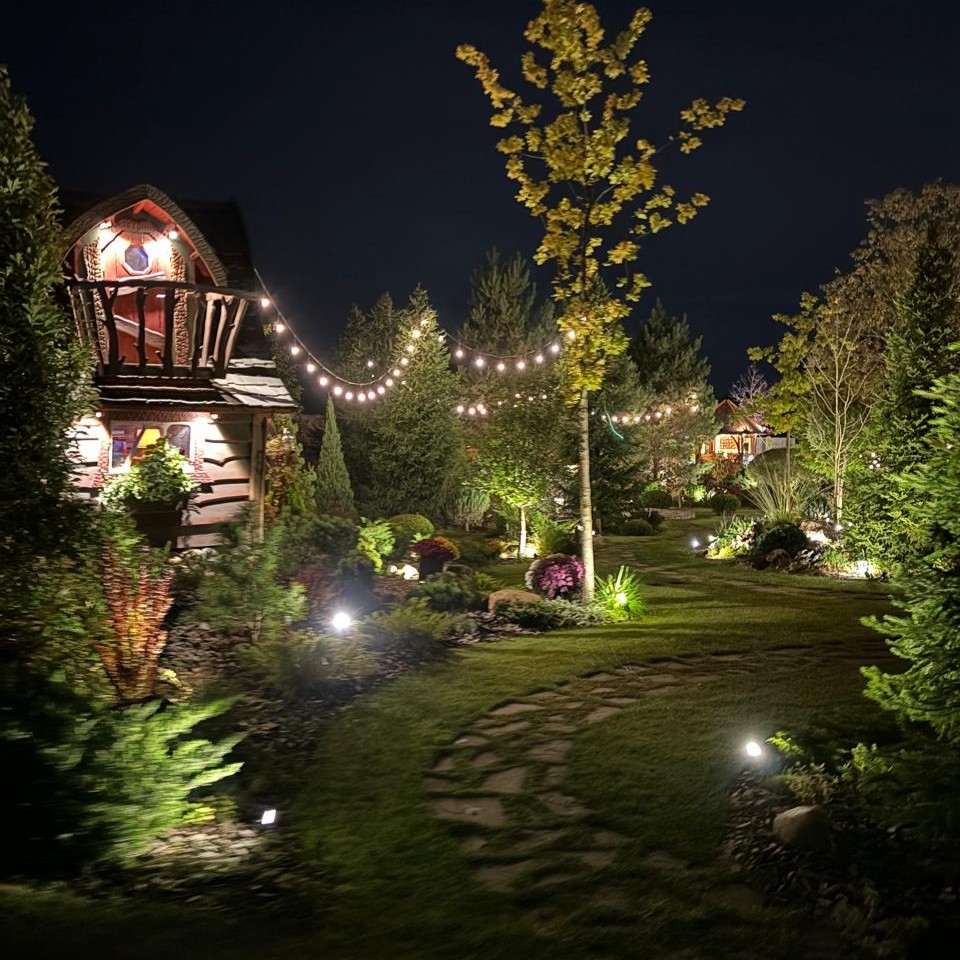акцентное и функциональное освещение - продуманное освещение участка для комфорта, безопасности и атмосферы в тёмное время суток.