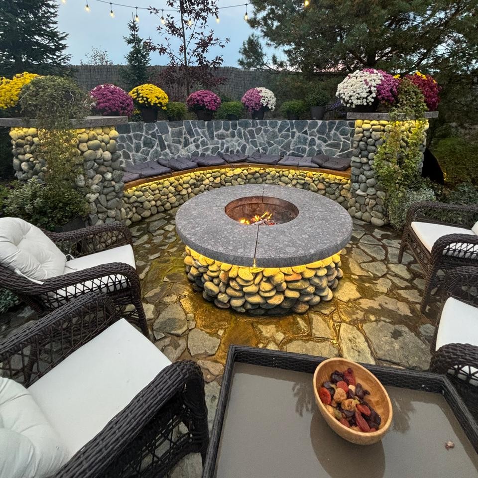 Террасы, площадки, места для отдыха и общения - зоны с мебелью, костровые и барбекю-зоны, уютные пространства для семьи и гостей.