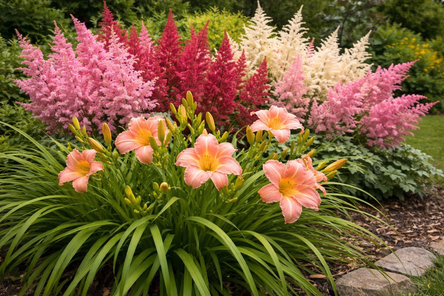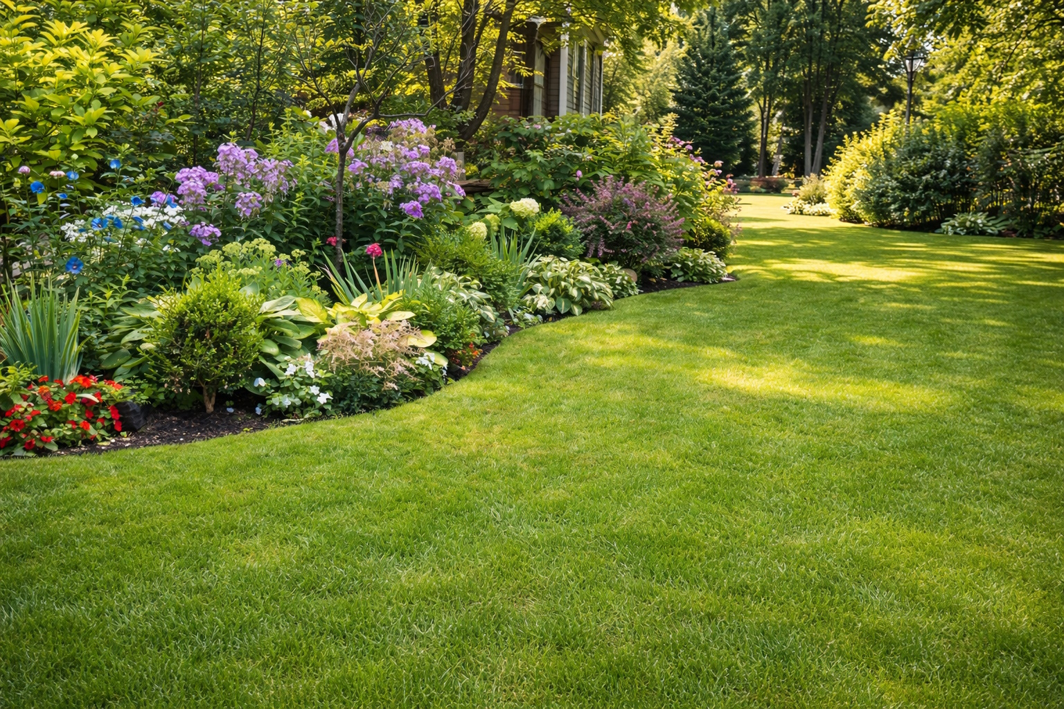 Во-вторых, установите систему автоматического полива. В засушливые периоды Подмосковья растения могут испытывать стресс, а капельный полив, спрятанный под мульчей, обеспечит их влагой без вашего участия. В-третьих, четко отделите газон от зон посадок с помощью бордюрной ленты или камня — это исключит «заползание» травы в цветники.