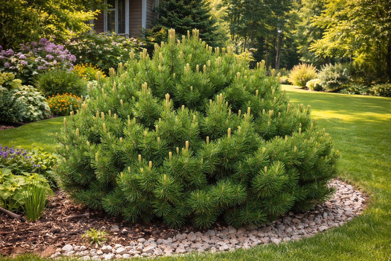 Хвойные — это скелет любого ленивого сада. Они декоративны 365 дней в году, не требуют обрезки (если выбраны карликовые сорта) и отлично подавляют рост сорной травы под своей кроной.