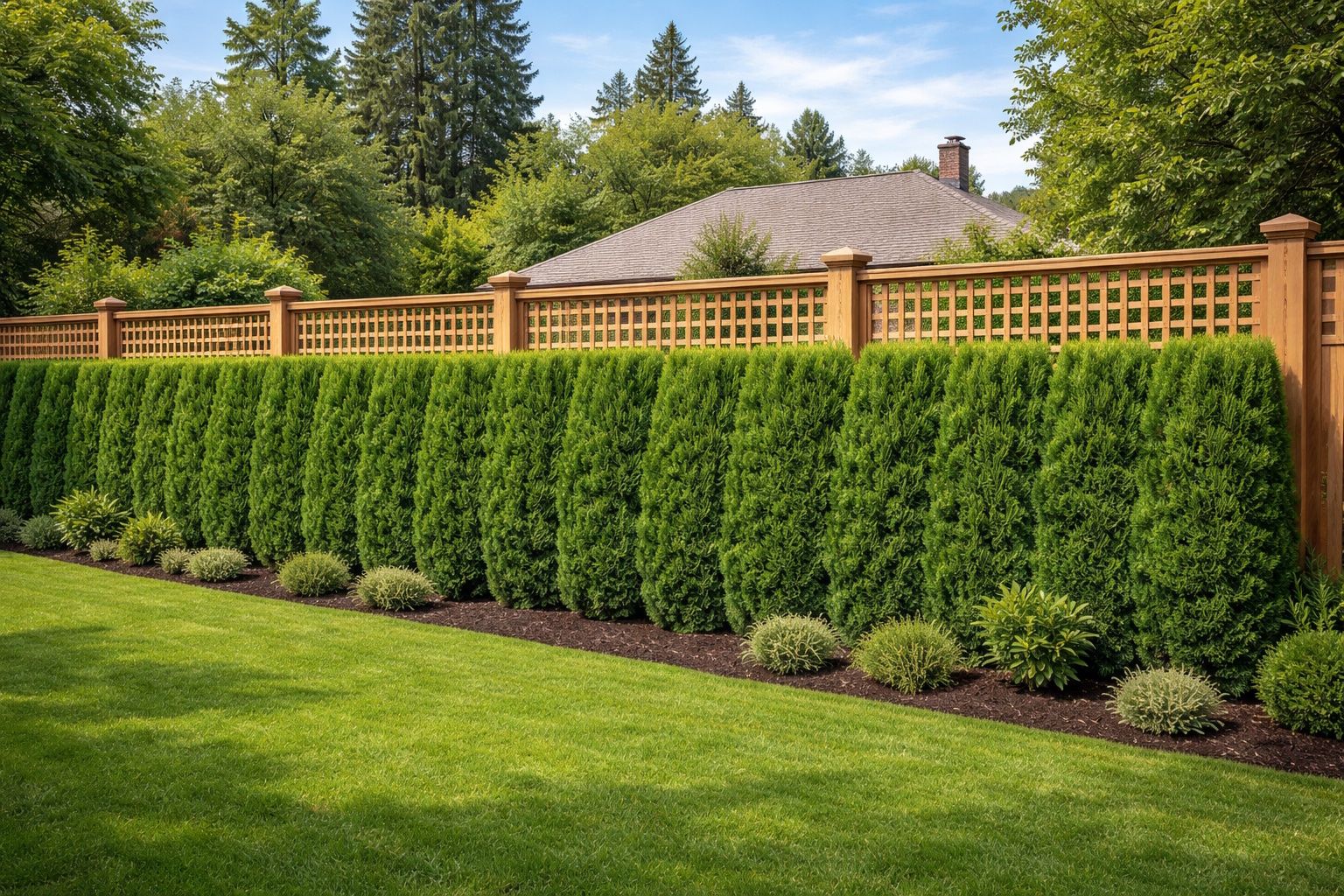 Хвойные растения — самый популярный выбор для тех, кто хочет сохранить приватность круглый год. Они создают плотную преграду, которая не теряет своей функциональности даже после листопада.