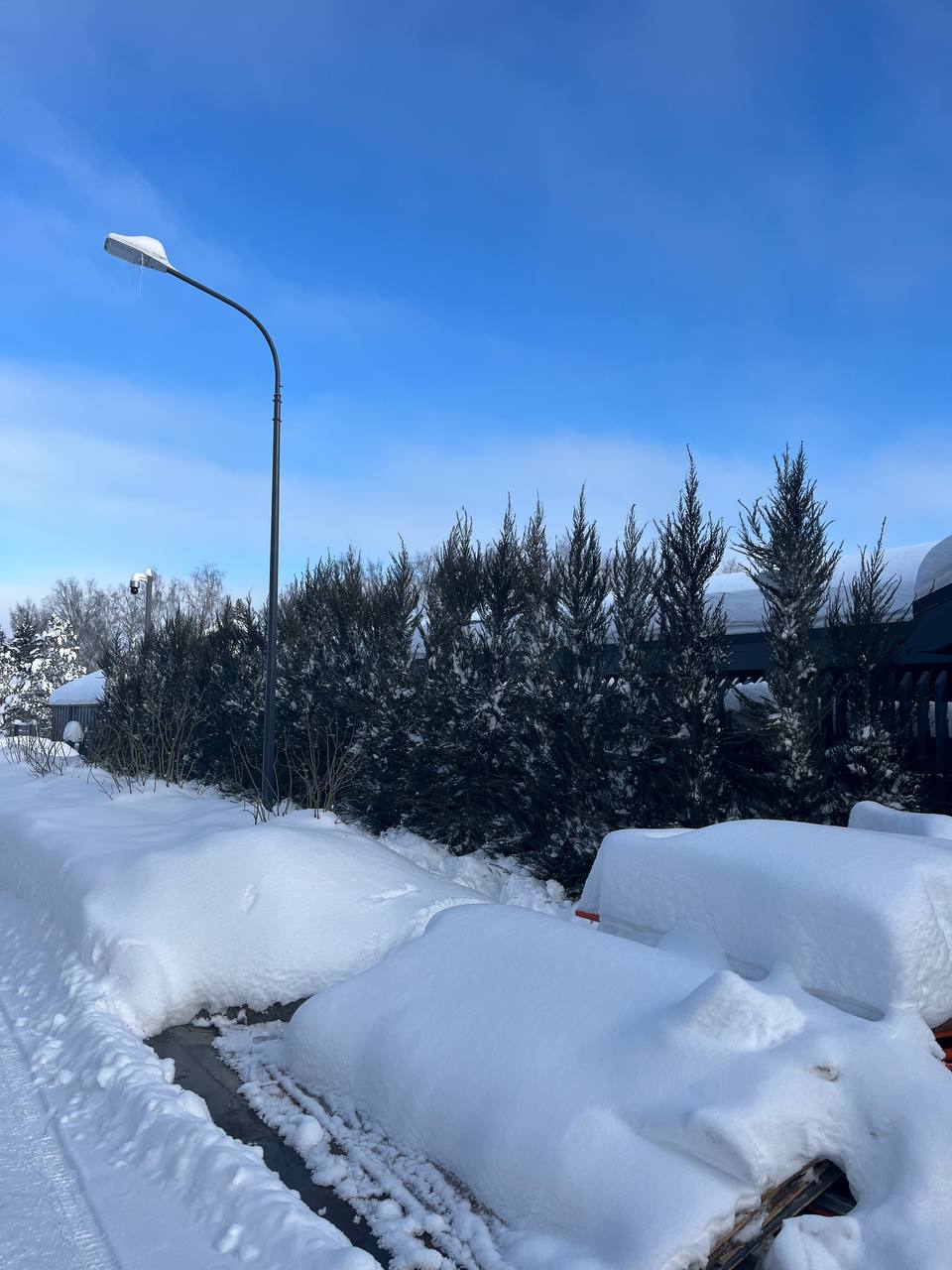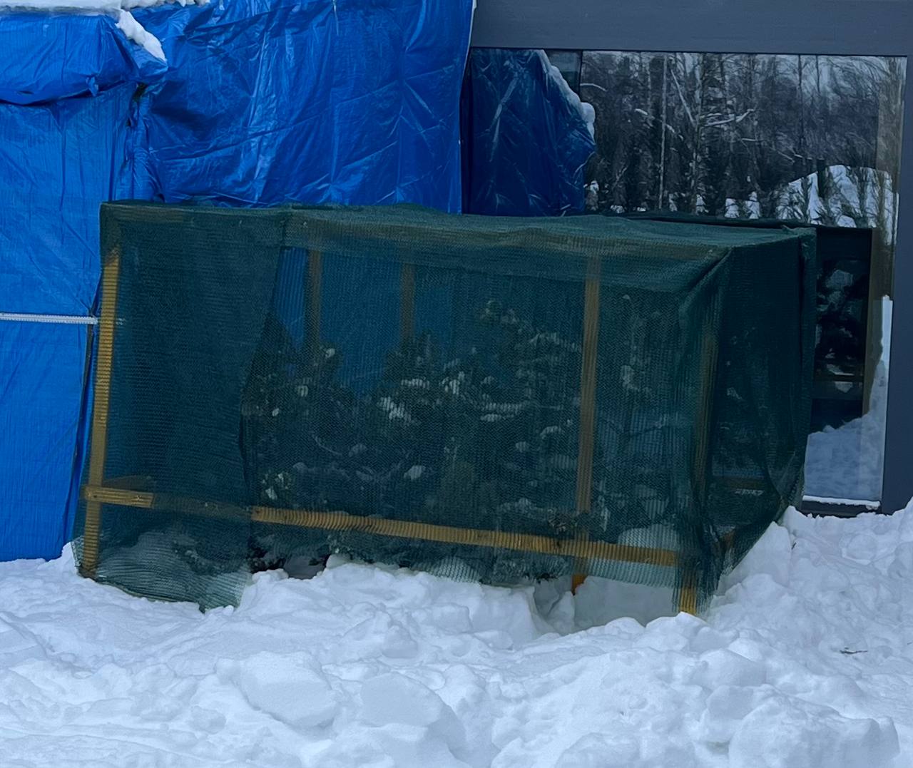 • бережно удаляем избыточный снег с крон деревьев и кустарников